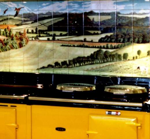 Art on Tiles has been in business for more than thirty years. Our company creates bespoke tile commissions for kitchens. Commissions range from a large tile mural behind an Aga to a basin splashback or just a few tile borders or single decor tiles to add interest to an area of plain glazed tiling.